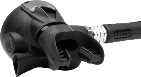 The ZEN 2nd stage adds lightweight performance and comfort to this hard-working setup. Its thermoconductive Polymer case offers all the benefits of metal but without the extra weight, and radial pressure openings evenly distribute water pressure across the diaphragm to reduce free-flows. This combination makes the Zen perfect for new divers using a regulator for the first time.